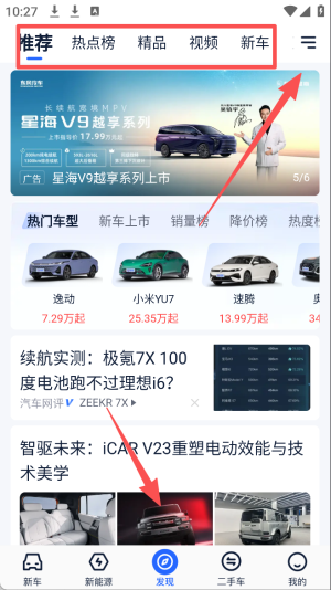4、获取新车信息:点击“新车”标签,获取最新的车辆信息和促销活动。