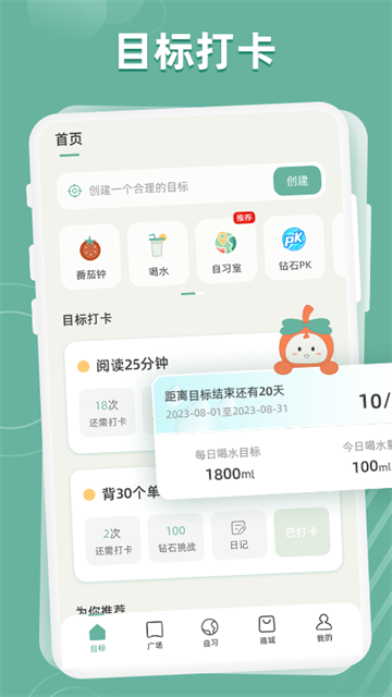 1.好柿花生可以帮助用户设定目标,通过每日打卡的方式,让用户养成坚持的习惯。