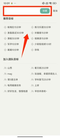 2、在目标创建页面,可选择推荐目标或自定义内容,选定后点击上方 “创建” 按钮,即可进入目标详情配置页。