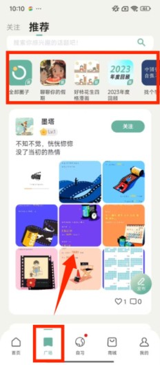 4、点击底部 “广场” 选项,进入后能看到各类圈子入口,还可浏览其他用户分享的内容,参与话题互动。