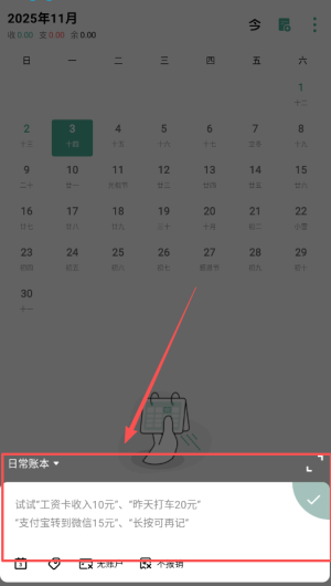 2、在记账过程中,用户可以按需选择不同的分类,如餐饮、交通和购物等,使每一笔开支都能得到准确归类看。