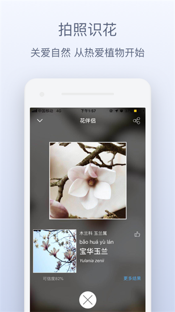 3.花伴侣采用先进的图像识别技术,只需拍摄植物的照片,就能快速准确地识别出植物的种类。
