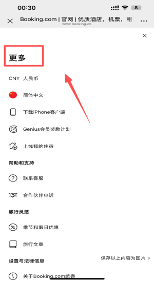 4、进入“更多”选Genius会员与客服,随时获取奖励及订单支持。