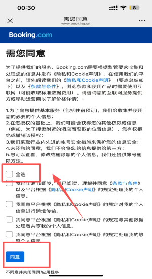 1、阅读条款后勾选“我同意”并点击同意,完成跨境数据共享授权。