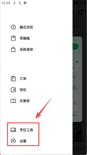 2、在侧边栏中选择“烹饪工具”,点击以进入工具页面。