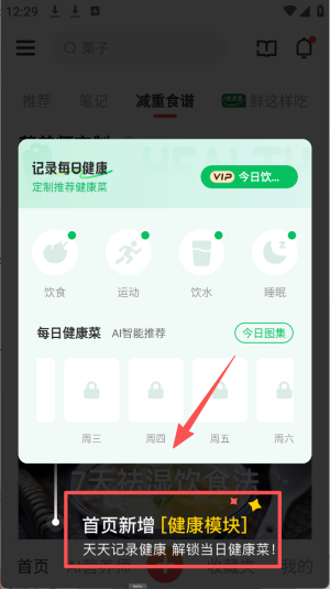 1、打开应用首页,找到新增的【健康模块】,点击“今日饮食”进入。