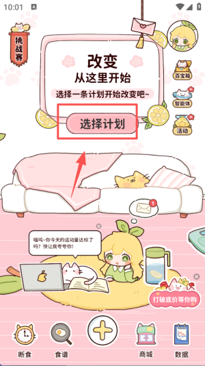 1、进入主页面,点击 “选择计划” 按钮,可进入计划选择界面,开启对应的改变计划流程。