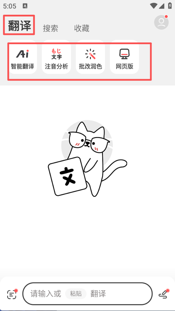 2、切换至 “翻译” 板块,能使用智能翻译、注音分析等工具,满足文字翻译与内容优化的不同需求。