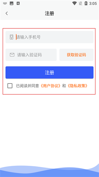 4、按注册页要求,依次输入手机号、获取并填写验证码,勾选“已阅读并同意”协议,完成注册操作。