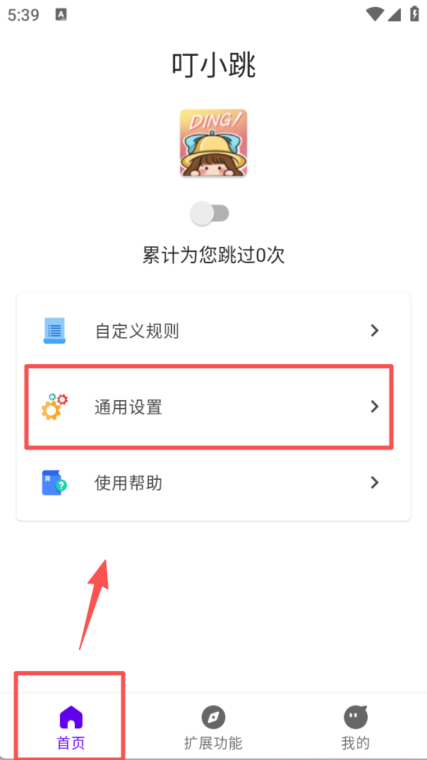1、进入首页,可找到通用设置入口,点击后能进入设置页面,调整叮小跳的相关功能配置。