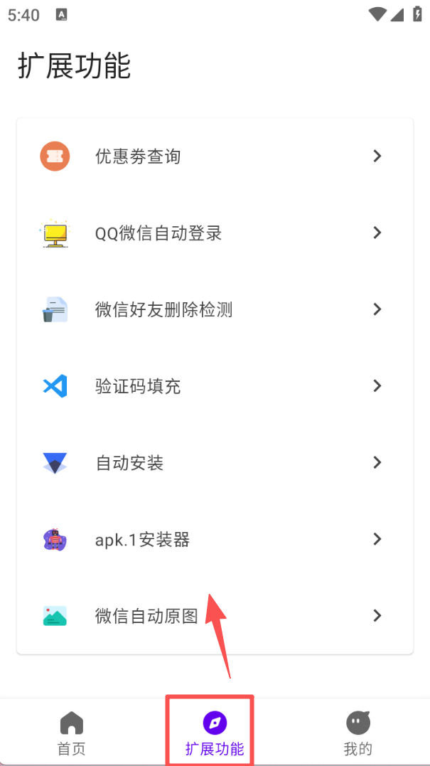 3、切换到扩展功能页面,可使用优惠券查询、自动登录等辅助功能,按需选择对应功能项。
