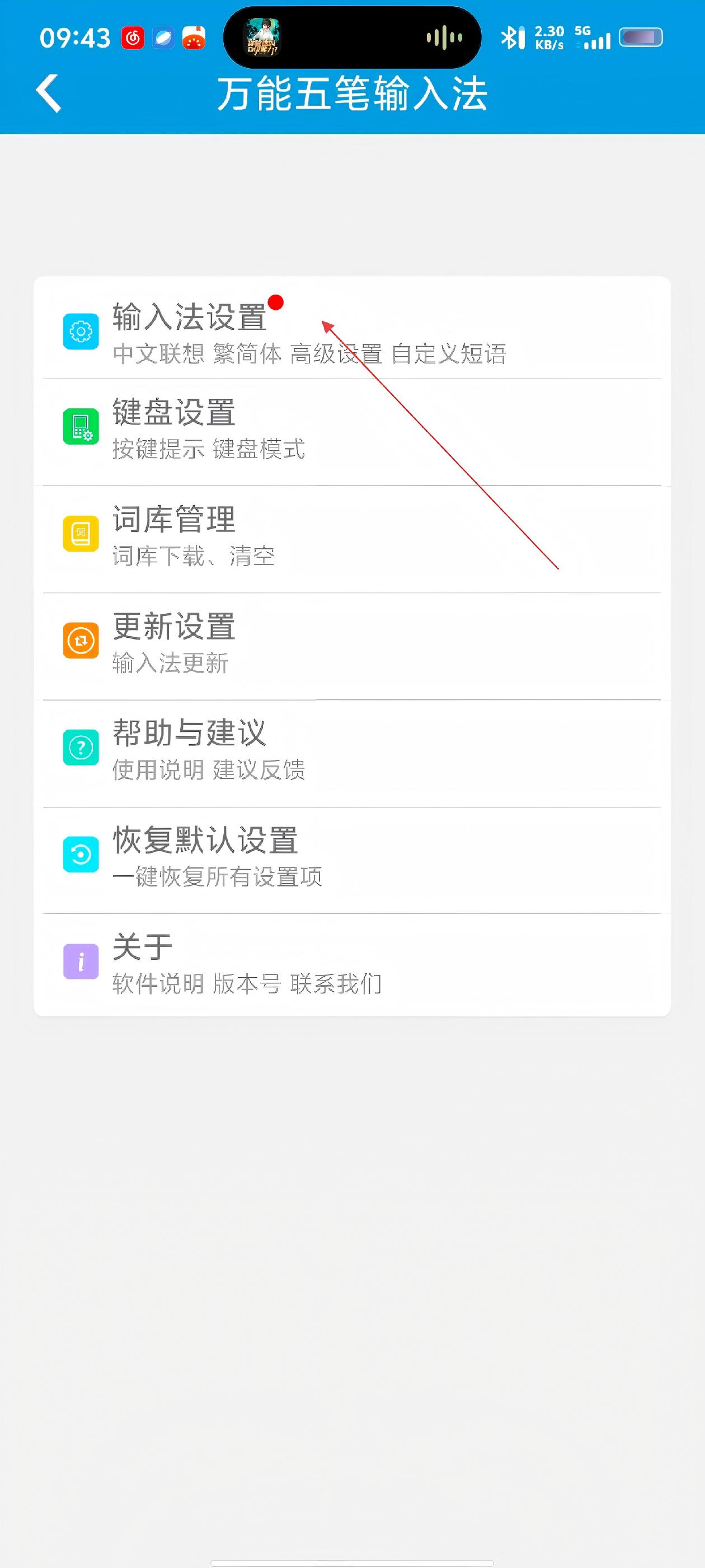 2、进入【万能五笔输入法】设置界面,若要调整输入相关功能,可点击【输入法设置】选项。