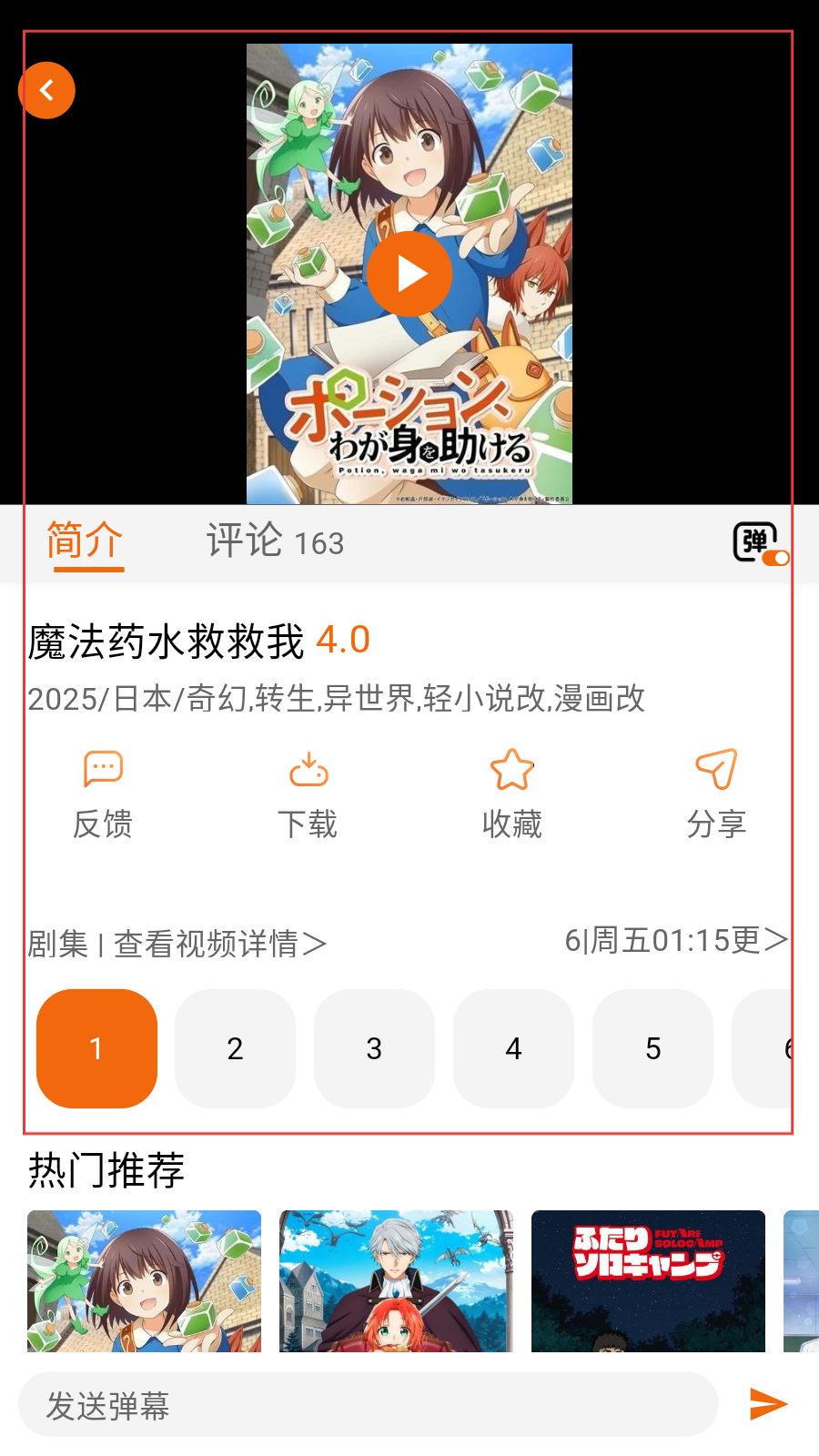3、查看动漫的介绍以及集数等,点击集数即可进入播放页,切换调整合适的来源。