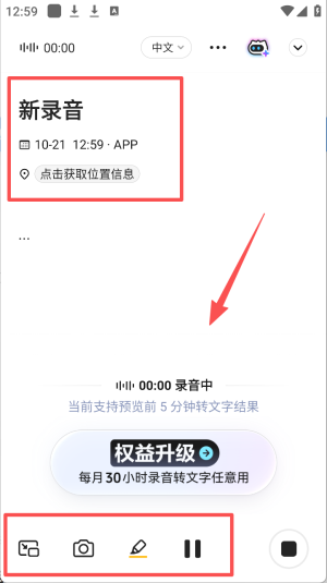 2、在音频列表中,点击“新录音”并使用底部的麦克风按钮开始录音。