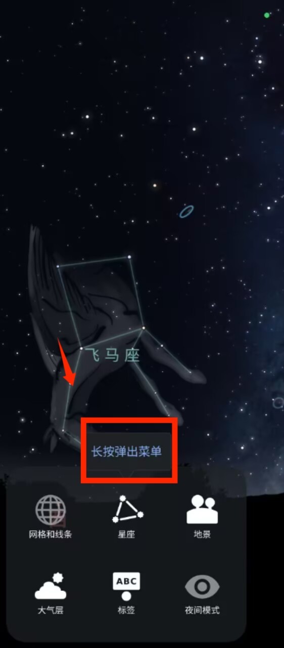 1、进入软件后,在星座展示界面长按对应星座区域,会弹出操作菜单,可进一步调整星座的显示设置。