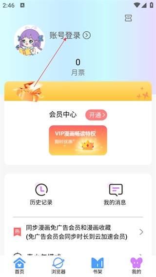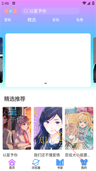 1、在软件首页可浏览精选推荐漫画,点击底部【我的】按钮可进入个人中心界面。