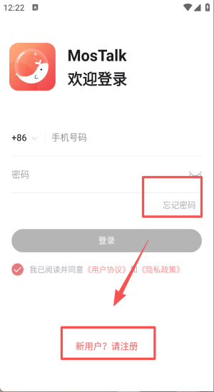 1、阅读用户协议与隐私政策,点击“同意”后继续注册新账号。