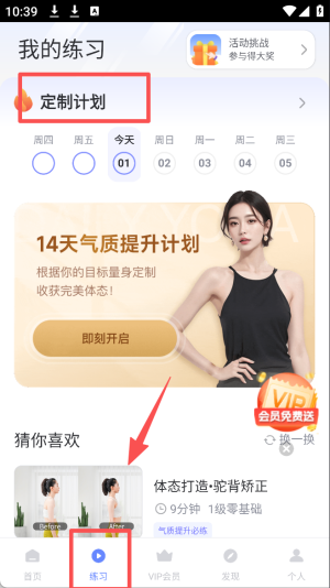 2、制定计划:点击“定制计划”设置个性化锻炼计划,开始锻炼。