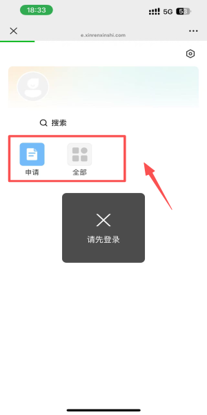3、按提示返回首页点“Q搜索”先登录,系统同步显示个人考勤与审批入口。