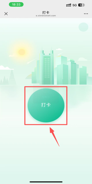 4、进入首页点击“打卡”按钮,一键完成上下班定位签到并自动生成记录。