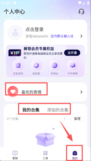 4、进入我的个人中心,可查看喜欢的表情和自己的合集等内容。