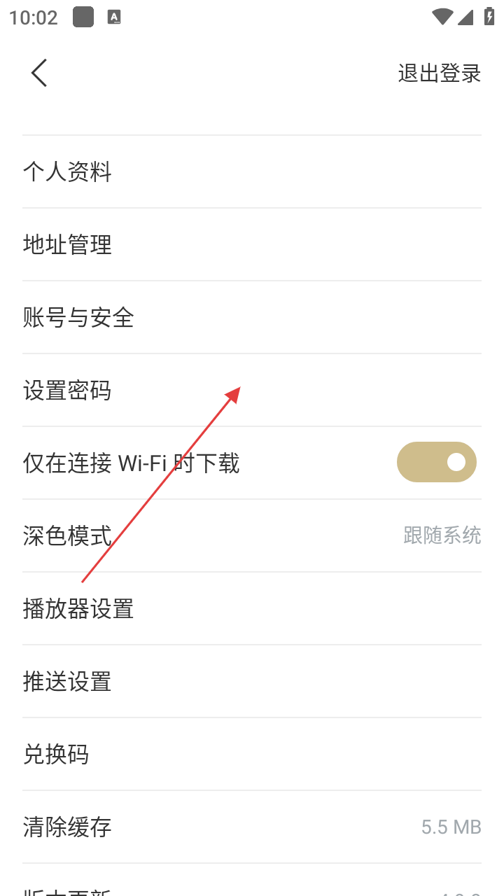 3、在设置界面,点击【设置密码】进入设置密码页面,还能进行个人资料、地址管理、账号与安全等设置。