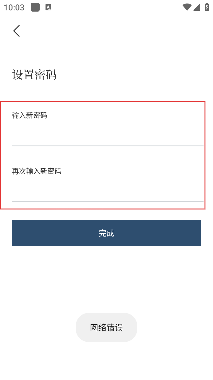 4、在设置密码页面,输入新密码并再次输入新密码后,点击【完成】即可完成密码设置操作。