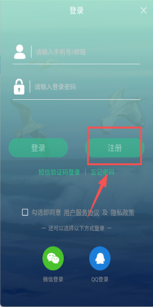 2、输入手机号与密码点击“登录”,无账号可切换短信验证码快速注册。
