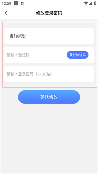 4、在修改登录密码界面,输入验证码和新的登录密码,点击【确认修改】按钮,即可完成登录密码修改,提升账号安全性。