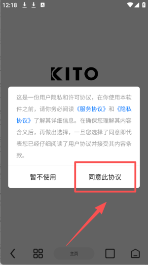 1、点击“同意此协议”按钮,接受用户隐私和许可协议。