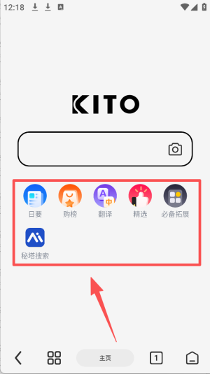 2、在首页点击底部的“主页”图标,进入浏览器主界面。