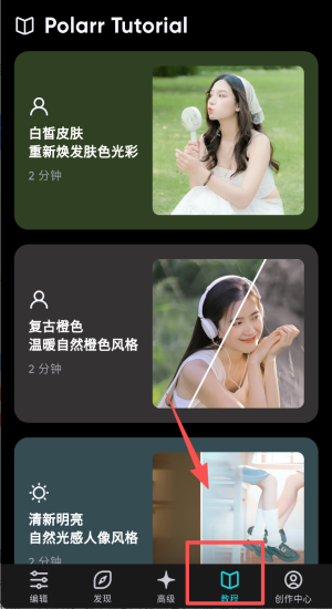 4、进入教程区观看白皙皮肤复古橙色等两分钟教程提升技巧。