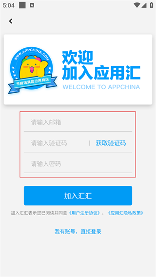4、进入邮箱注册界面,需依次填写邮箱、获取并填入验证码、设置密码,完成后点击“加入汇汇”即可完成注册。