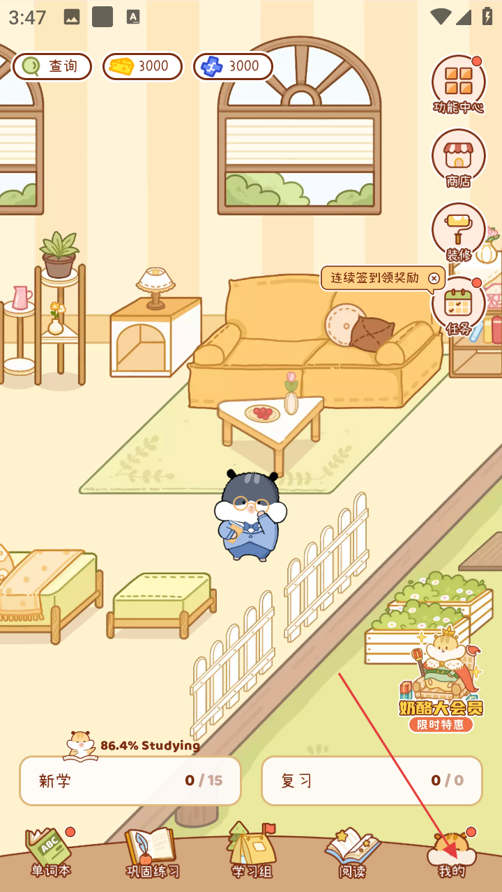 1.奶酪单词还提供了每日签到和积分系统,用户可以通过签到和完成学习任务来获得积分,增加学习的趣味性和动力。