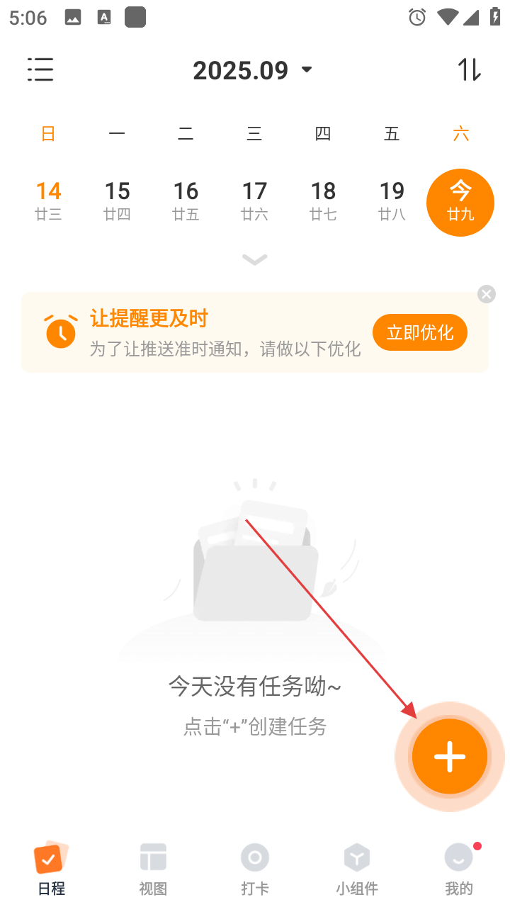 1. 打开指尖时光APP,进入日程页面,点击右下角橙色的【+】按钮。