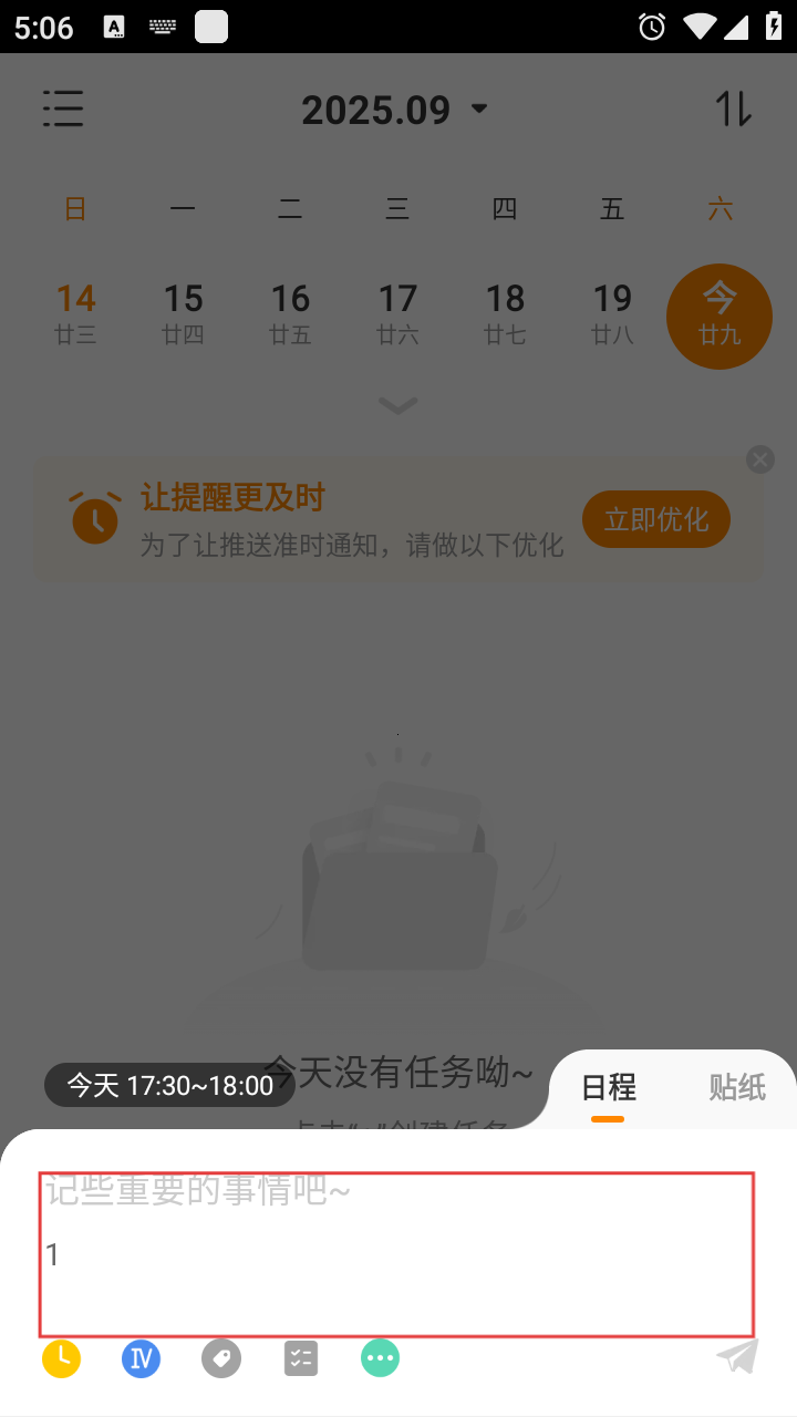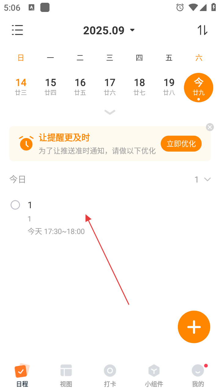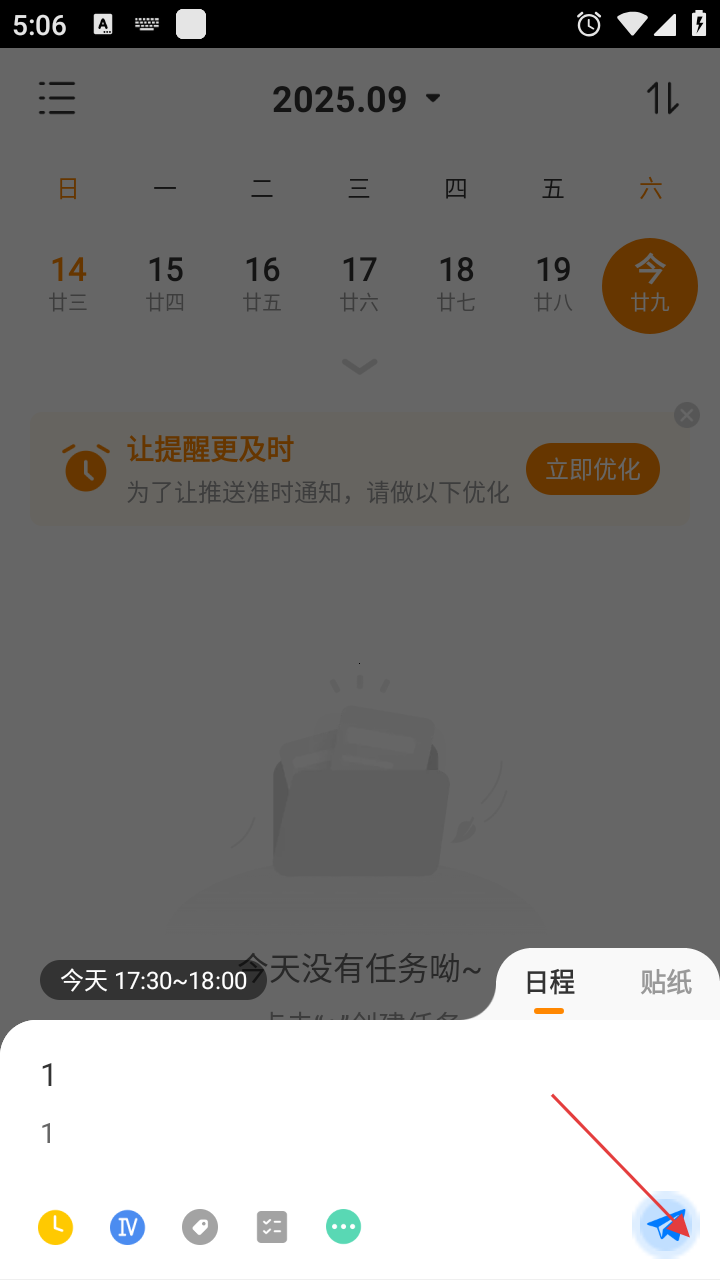 4. 此时,任务会成功创建并显示在日程页面的今日任务列表中。