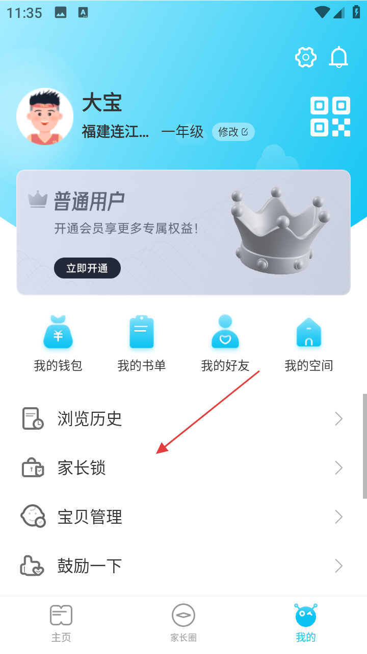 2、进入个人中心后,点击【家长锁】选项,进入家长锁设置页面。