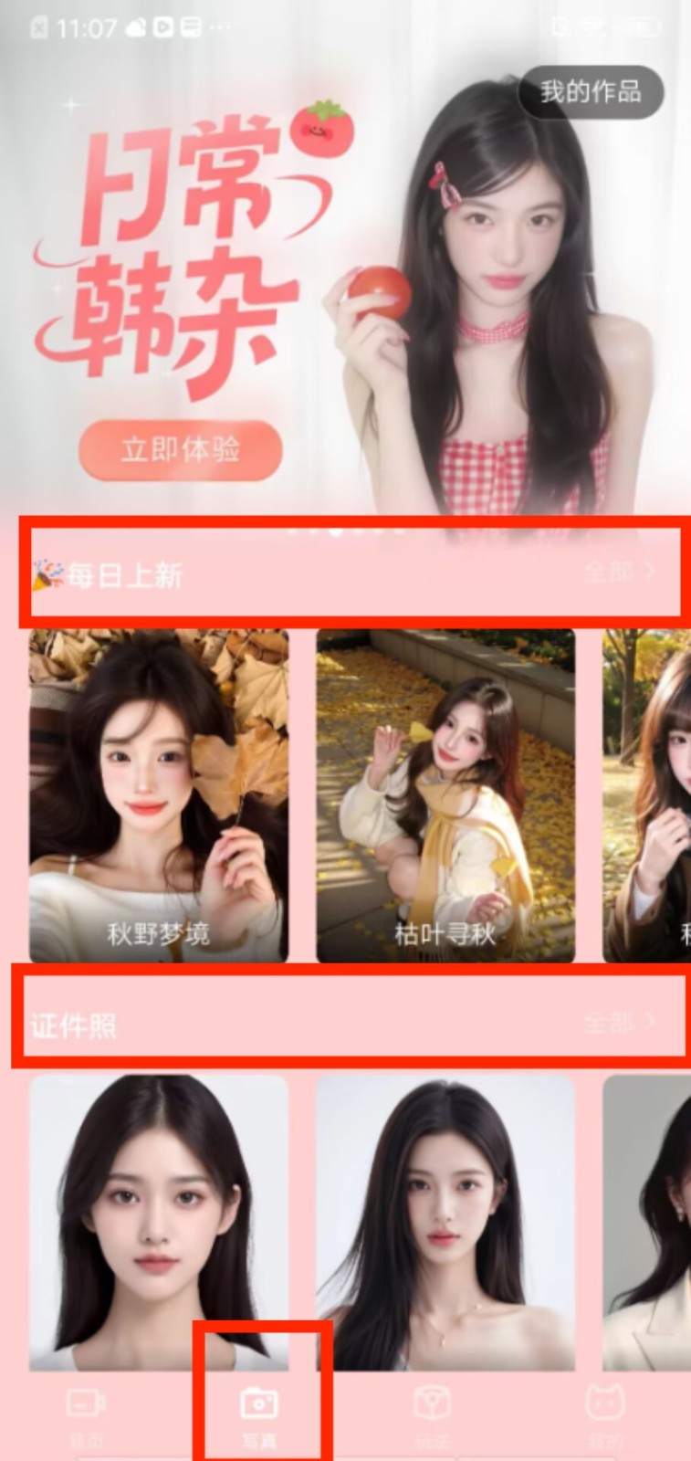 2、切换到 “写真” 页面,能查看每日上新的风格模板,也可在证件照分类里选择对应样式。