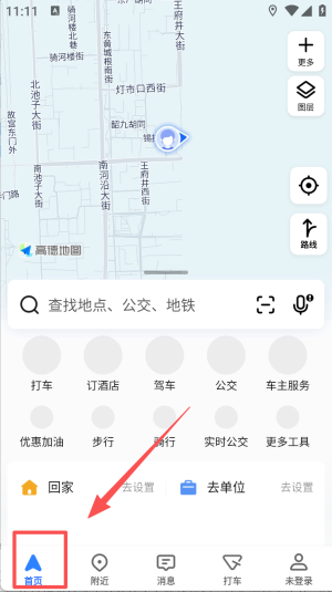 1、打开高德地图APP后,我们点击主页右上角的【图层】,如下图所示;
