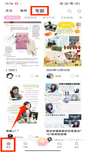 1、在首页浏览手帐作品时,点击作品下方的 “回戳作者” 按钮,可与创作该作品的用户进行互动交流。