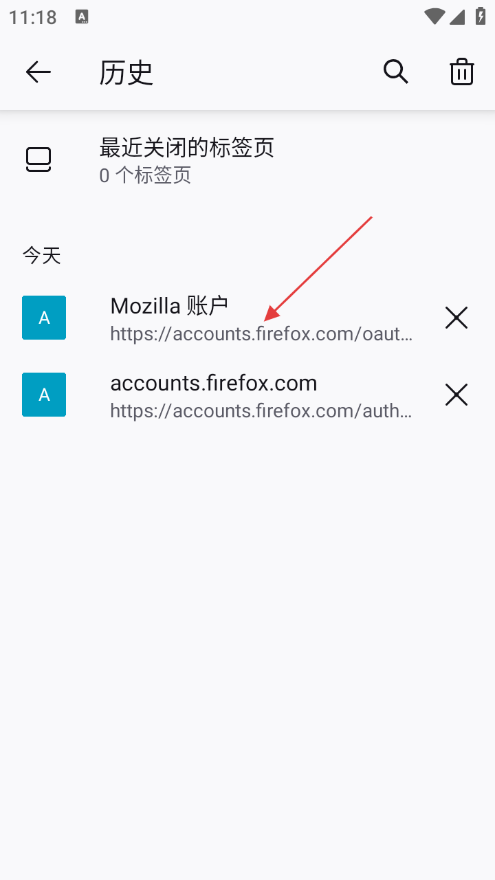 3、在历史记录里,找到并点击【Mozilla-账户】相关网页条目,进入对应的网页界面。
