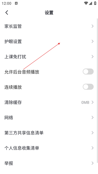 3、在设置页面中,选择【护眼设置】选项,进入护眼相关功能配置界面。