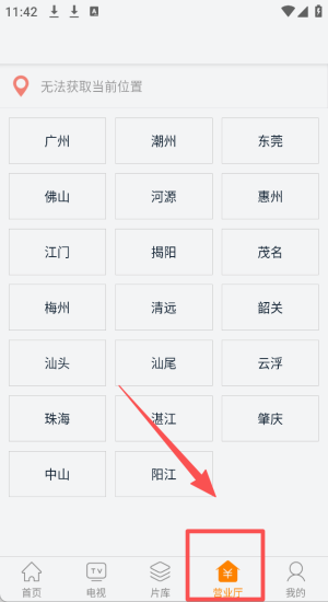 4、点击“营业厅”按钮,选择你的城市,获取本地的电视直播内容。