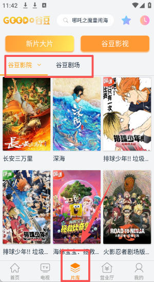 3、选择“谷豆影视”分类,浏览推荐的电影和电视剧。