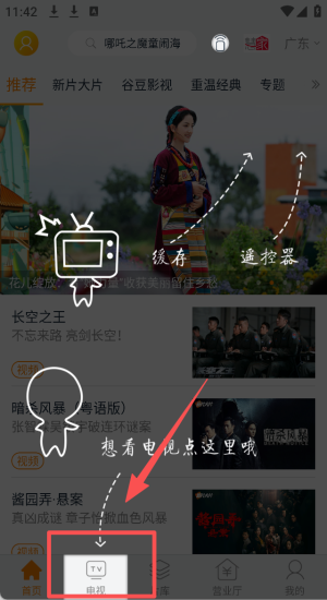 3、选择“谷豆影视”分类,浏览推荐的电影和电视剧。