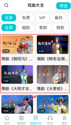 1、在应用首页,用户能够方便地浏览各种戏曲内容,以不同剧种为分类,轻松找到自己感兴趣的表演视频。