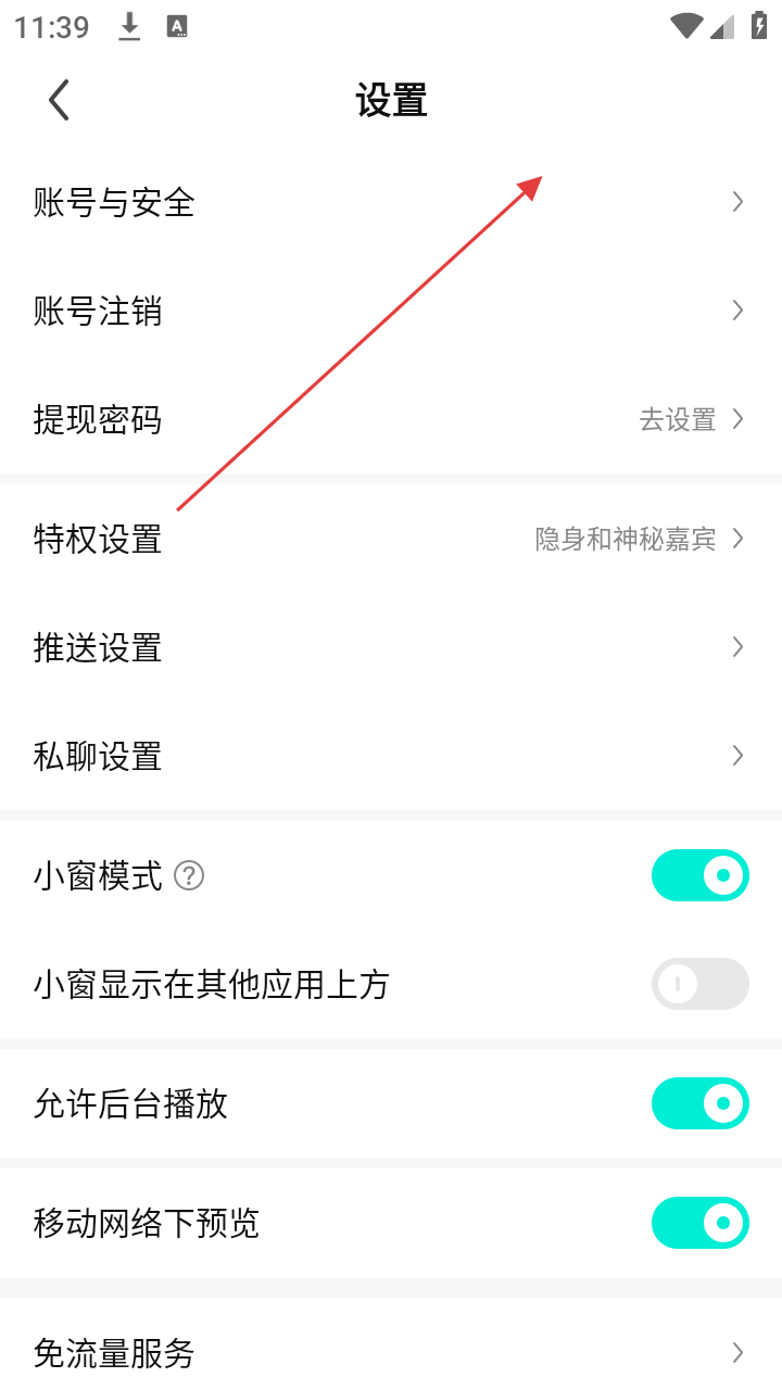 3、进入设置页面,有账号与安全、账号注销等选项,点击【账号与安全】,可进行账号安全相关设置。