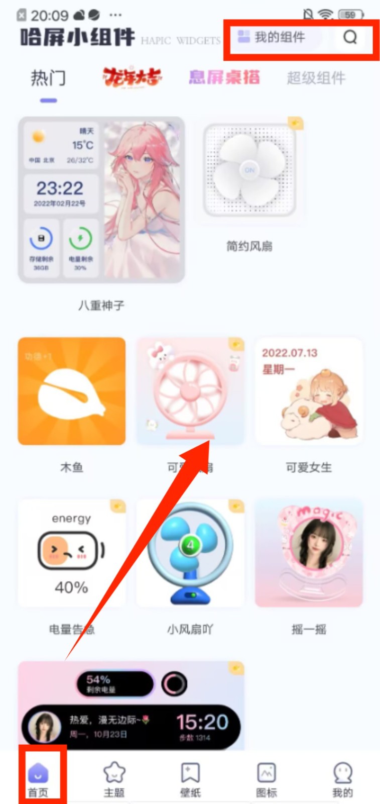 1、进入首页,在 “我的组件” 栏下可浏览热门小组件,选择心仪的样式来装点设备界面。