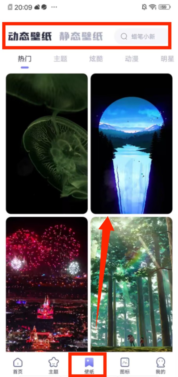 3、打开壁纸页面,在 “动态壁纸”“静态壁纸” 标签下,挑选喜欢的画面设置为设备背景。