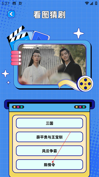 4、进入游戏界面后,可根据展示的图片,从选项中猜出对应的剧集,完成游戏挑战。